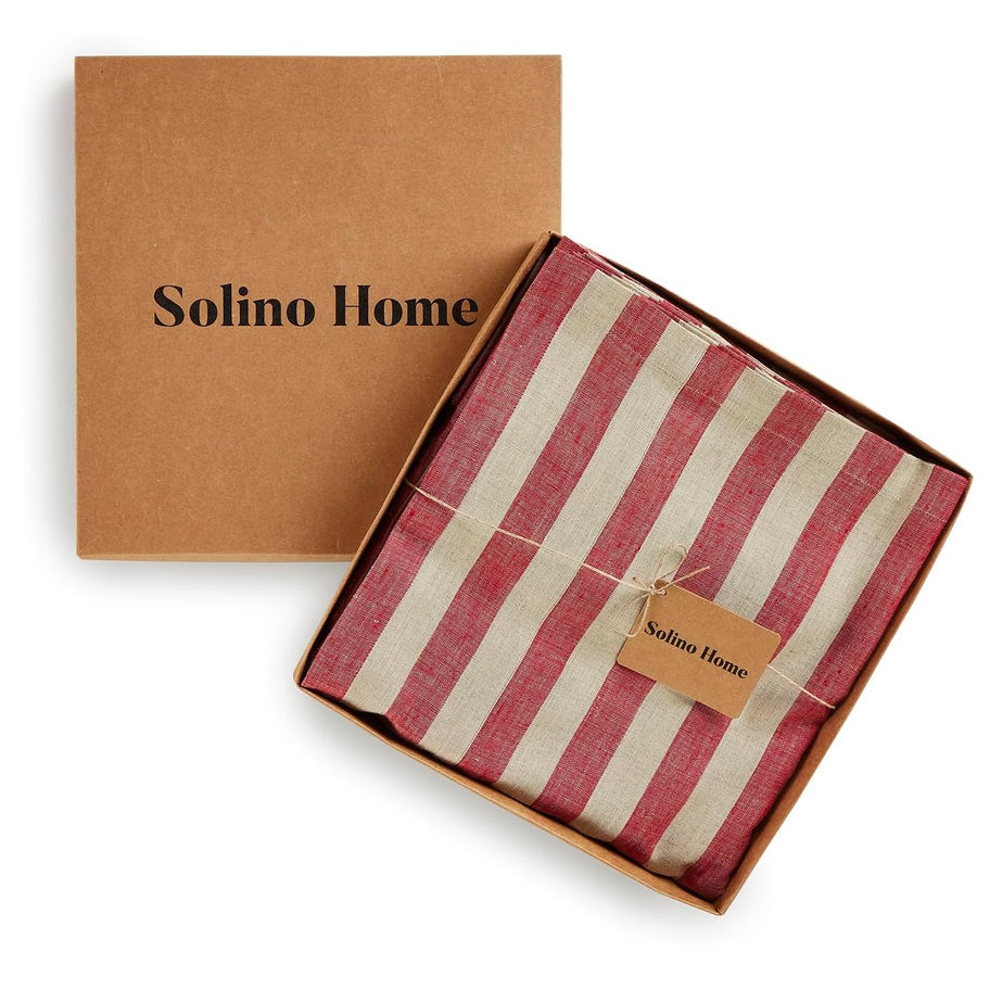 Solino Home Linen Tablecloth 60 x 120 Inch - Sorrento Stripe 100% Pure Linen Re